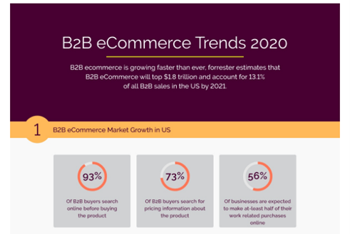 According to Forester, the B2B e-commerce market is growing rapidly with over 1.8 trillion USD and accounts for more than 13% of total B2B sales.